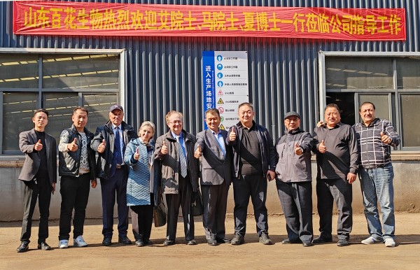 马兹洛夫·米哈伊院士、艾克拜尔・伊拉洪院士、夏蒂库洛夫·夏迪教授一行对山东百花生物集团进行深入考察调研,并与山东百花集团董事长刘全喜、总经理刘恩城等进行密切交流与合影留念,院士们对百花生物集团的产品创新、科技研发、技术升级等进行指导。