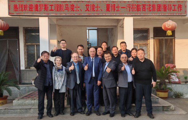 马兹洛夫·米哈伊院士、艾克拜尔・伊拉洪院士、夏蒂库洛夫·夏迪教授一行对山东百花生物集团进行深入考察调研,并与山东百花集团董事长刘全喜、总经理刘恩城等进行密切交流与合影留念,院士们对百花生物集团的产品创新、科技研发、技术升级等进行指导。